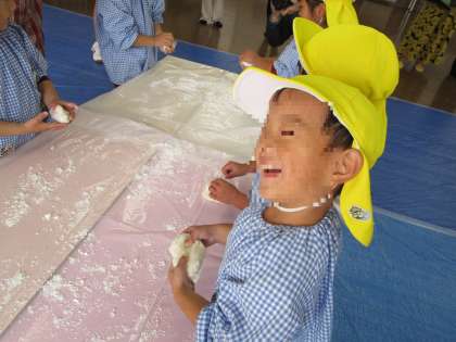 みんな自然とニコニコ笑顔になり、お餅の感触を存分に楽しんでいました。
