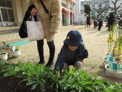 春菊収穫 公開日 2024/02/16 更新日 2024/02/16 幼稚園日記 2月9日(金) 春菊が大きく生長したので、収穫しました。 これまで野菜は苦手だと言っていた子どもが、自分たちで栽培して収穫した野菜は食べられたと!!! 今回も、自分で収穫した春菊を使って、自分でお味噌汁を作るそうです。 こういう話を聞くと、自分で栽培して収穫する経験は、子どもの食育にとてもいいのだなと改めて感じます(^^) いいね(0)