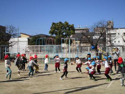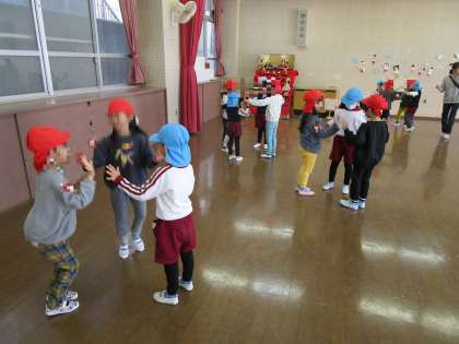 たくさん体を動かして遊んだ後は、進学する小学校ごとに分かれて、自己紹介をしたり、なかよし遊びをしたりして、楽しい時間を過ごすことができました。