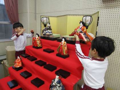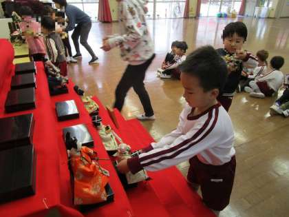 雛人形を飾りました 公開日 2024/02/29 更新日 2024/02/29 幼稚園日記 2月21日(水) そら組、はな組の子どもたちが雛人形を飾ってくれました。 由来や、人形の名前や持ち物を聞いたり、見たりしました。 きれいな人形や道具をそーっと大切に持って、慎重に飾る子どもたち。 3月3日のひな祭りが楽しみですね♪ いいね(0)