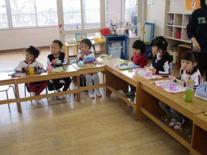 友達や先生と楽しくおしゃべりしながら、とっても楽しいお弁当タイムでした♪