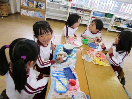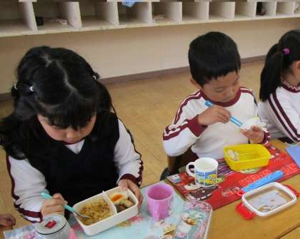 「今日で最後」という言葉を聞いて、ちょっぴり寂しそうな感じもありましたが、お家の方が愛情たっぷりに作ってくださったお弁当を、友達とのおしゃべりを楽しみながら、にこにこの笑顔で頬張っていました。