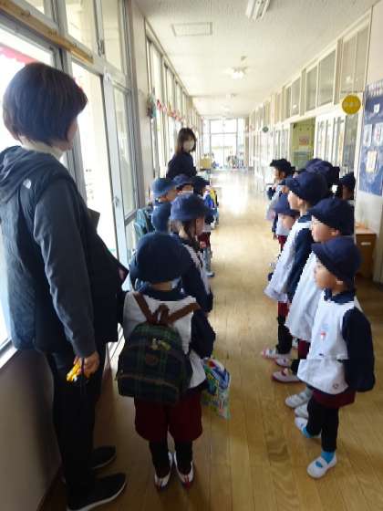 そら組さんが、『一緒に遊んでくれてありがとう』とみんなにお別れの挨拶に来てくれました。ひよこ組さん、はな組さんには「小さい組さんに優しくしてね」、先生たちへは「いろいろ教えてくださってありがとうございました」と自分たちの気持ちを伝えてくれたそら組13名の子どもたち。幼稚園の一番大きいお兄さん、お姉さん、こちらこそありがとうございました。明日の修了式!天下茶屋幼稚園のみんなで心を込めてお祝いしますね!