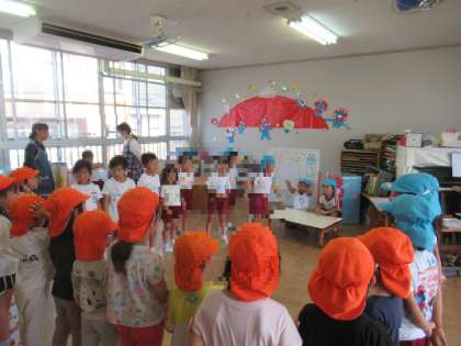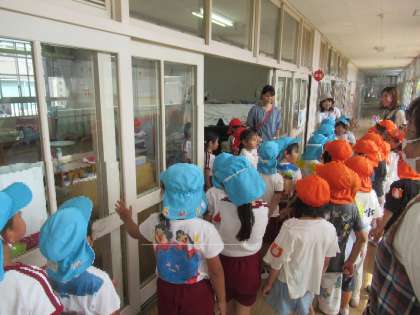 運動会ごっこをした後は、少し休憩をして、そら組(5歳児)が保育所のお友達と一緒に幼稚園探検をしました。