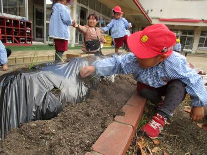 玉ねぎの苗植えをしました! 公開日 2025/12/12 更新日 2025/12/12 幼稚園日記 12月12日(金) はな組とひよこ組で、玉ねぎの苗植えをしました! 「玉ねぎの赤ちゃん!」や「(土の)お布団かけて、大きくなーれ!」と、声をかけながら植え付けを完了させることができました。 収穫は来年の春を予定しています。みんなで植えた玉ねぎが、どのように成長していくのか楽しみですね! いいね(0)