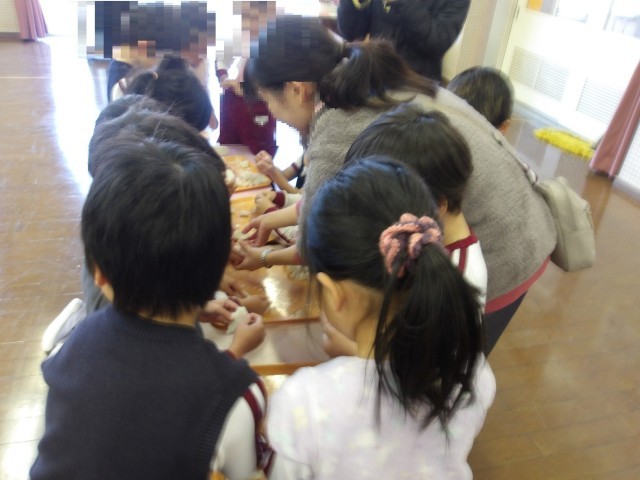 少し硬いお餅に苦戦しながらも、パカッと開いた瞬間には「わあ!」と歓声が上がりました。