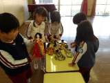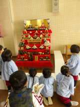2月25日(火) そら組(5歳児)が飾ってくれた雛人形を、はな組(4歳児)とひ...